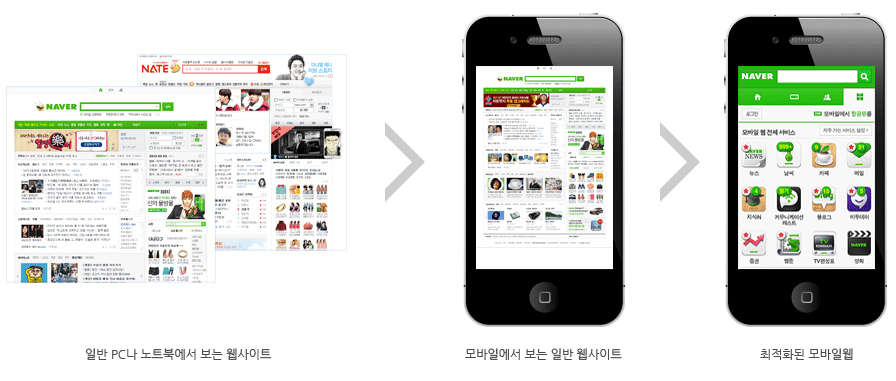 휴대폰에서 알아보기 쉽게 만들어진 웹 서비스. 반응형 웹이라고 보면 된다.