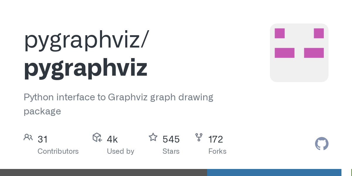 pygraphviz는 python 언어로 바로 위의 graphviz를 사용할 수 있게 해주는 패키지입니다. pygraphviz를 설치하면 python으로 graphviz의 그래프를 생성하고, 읽고, 편집하는 등의 작업을 할 수 있습니다.